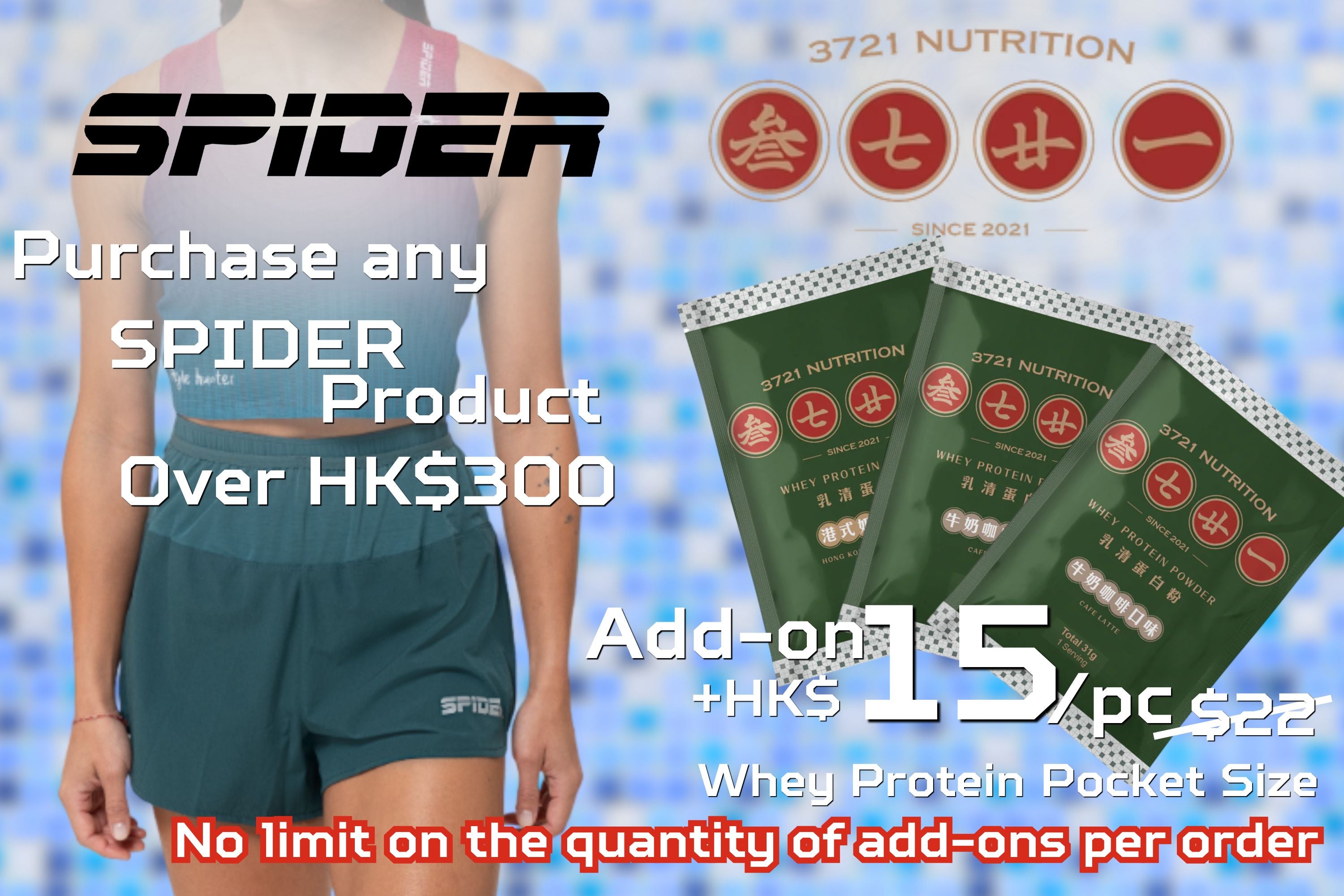 With any purchase of SPIDER OUTDOOR products totaling HK$300, you can add-on at HK$15 per pack (original price: HK$22).