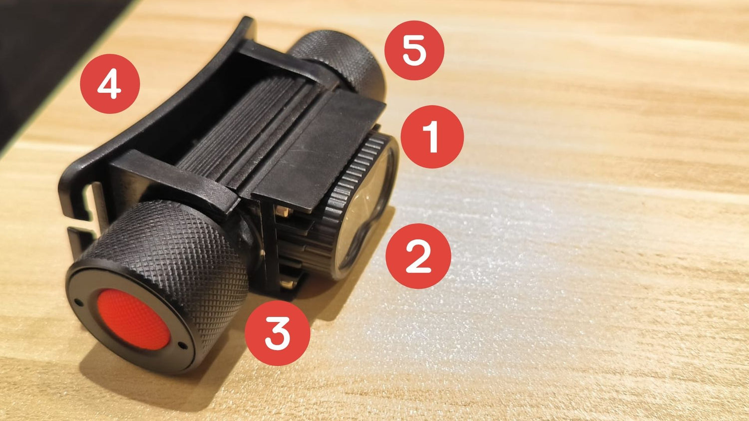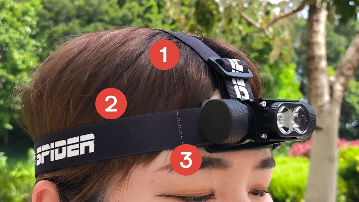 1 Circular headband - Besides securing the headlamp, it prevents sweat from dripping into the eyes.