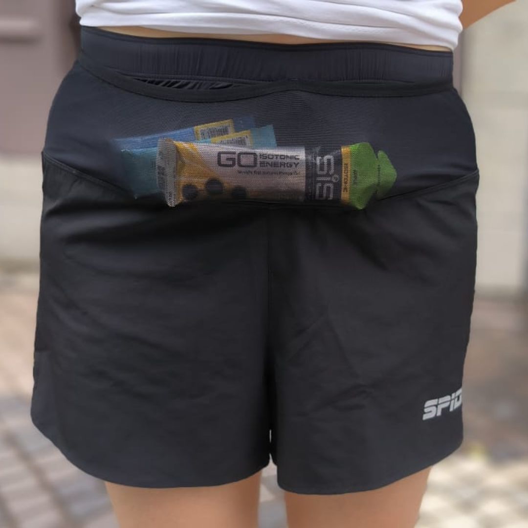 When the light source is approaching, the logo and reflective markings on the back pocket will reflect light, especially reflecting the light back towards the light source, thereby enhancing the runner's safety.