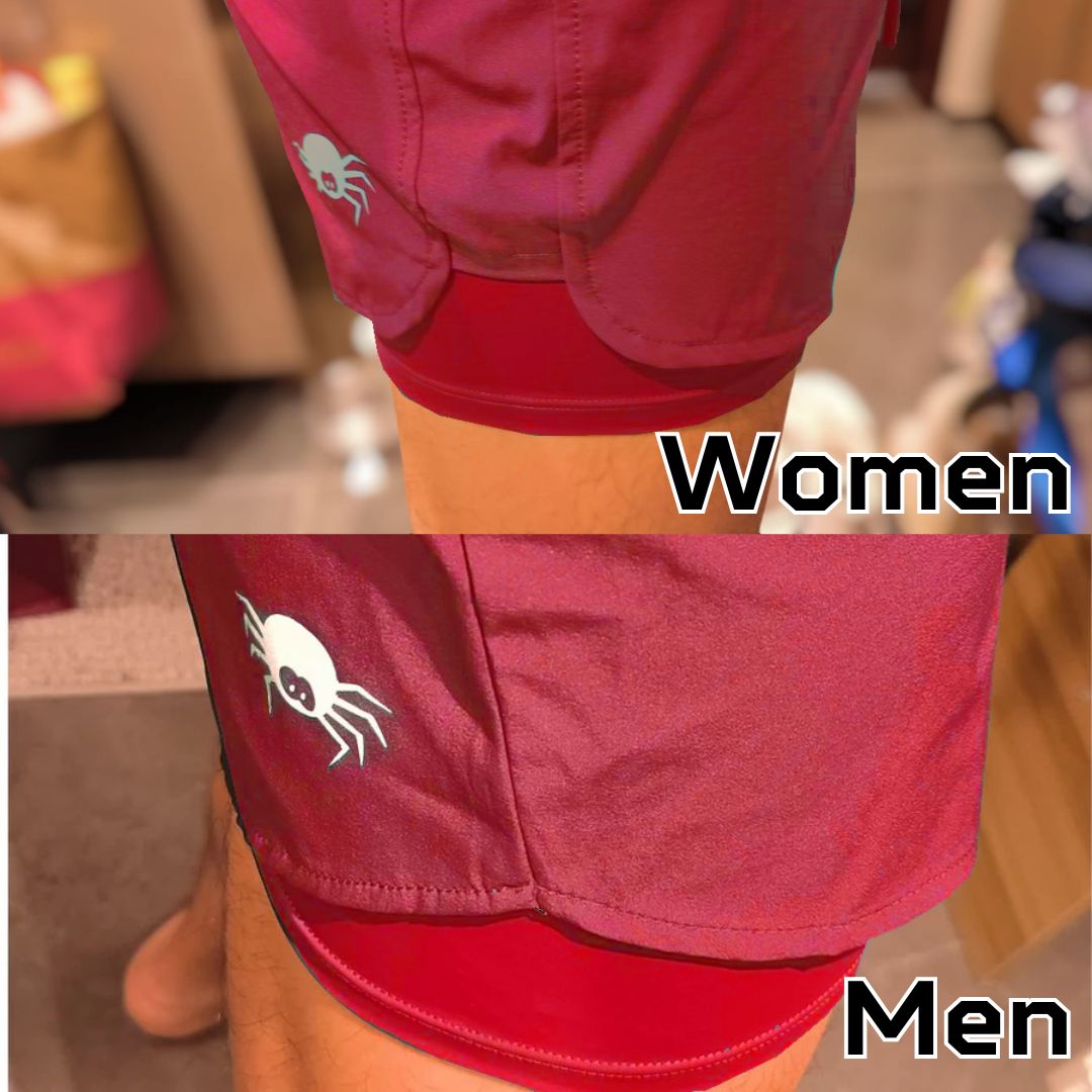 The men's shorts has an angled slit, but it is not as prominent as the women's.