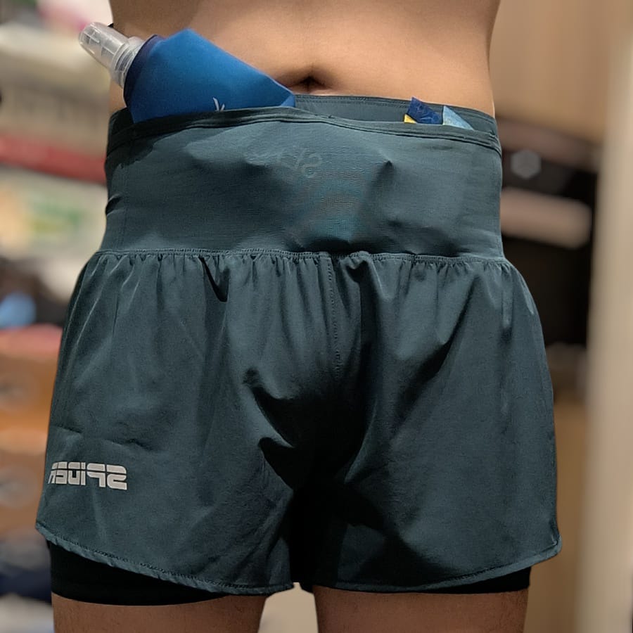 When the light source is approaching, the logo and reflective markings on the back pocket will reflect light, especially reflecting the light back towards the light source, thereby enhancing the runner's safety.